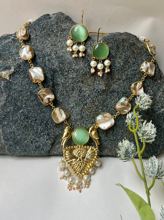 HANDCRAFTED SEMI PRECIOUS STONE MOP LONG NECKLACE SET DB-SPS1600Z2