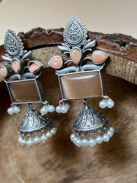 Mermaid Light Orange Monalisa Stone Jhumka Earrings DB-JH13800Z