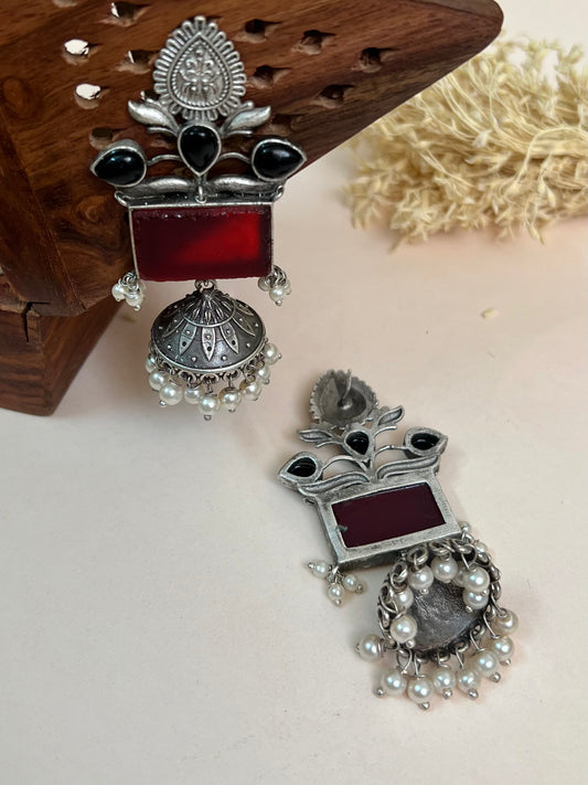 Mermaid Maroon Monalisa Stone Jhumka Earrings DB-JH13800Z