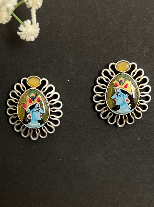 Tanjore Hand-painted Krishna Studs Earrings DB-SR505Z19