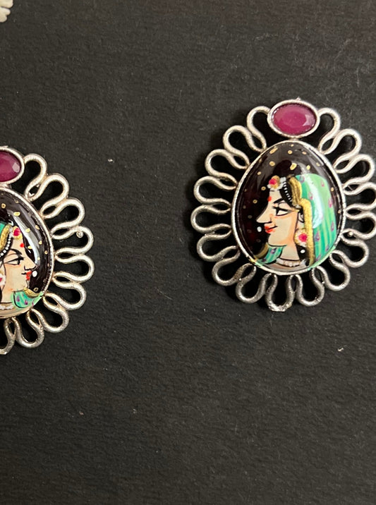Tanjore Hand-painted Rani Stud Earrings DB-SR505Z21