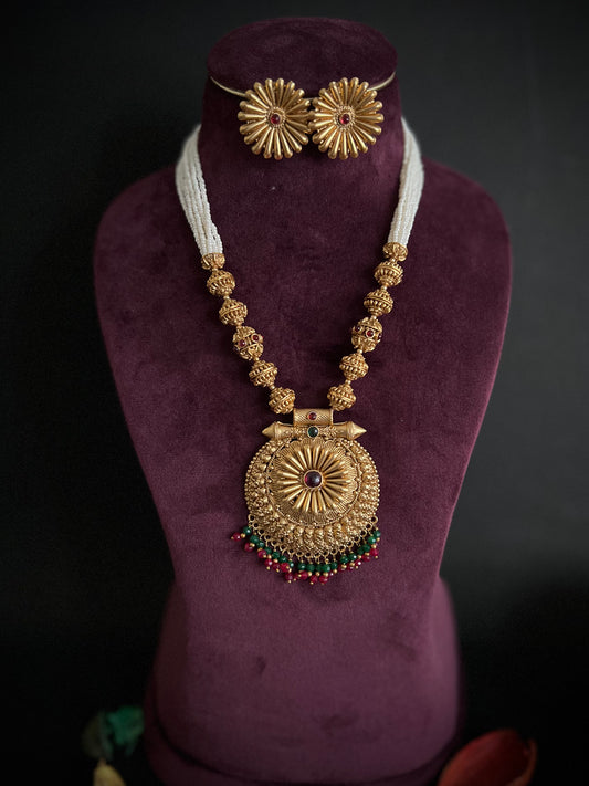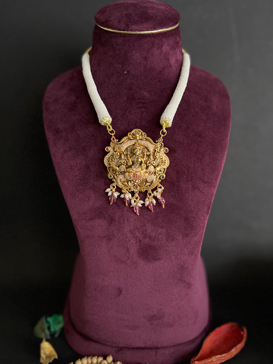 Antique Gold-Plated Laxmi Moti Threaded Big Temple Jewellery Set DB-GP11140Z8