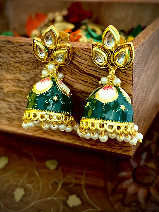 Zevar Meenakari Kundan Green Jhumka DB-GP1380Z