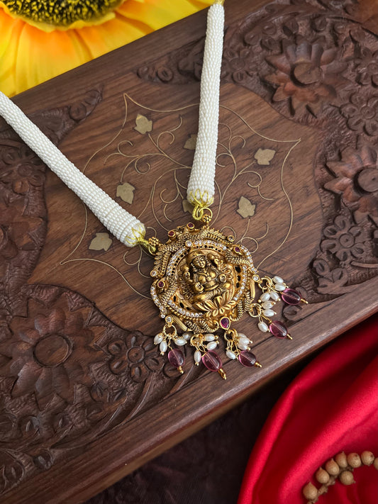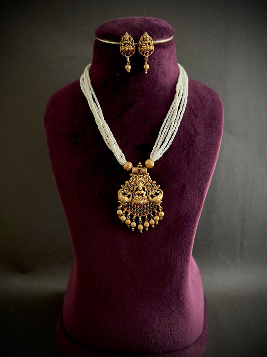 Antique Gold-Plated Laxmi Moti Threaded Small Temple Jewellery Set DB-GP11140Z8