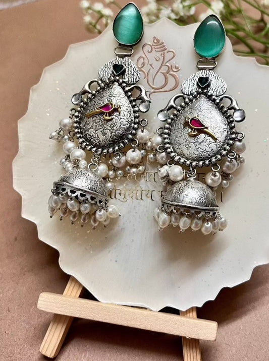 Silver Replica Panchi Dangler Earrings DB-SR10001