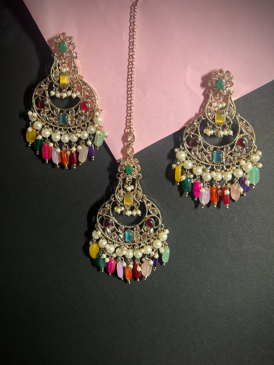 Reverse AD Chandbali Earrings with Multicolor Gemstones DB-RAD17777Z