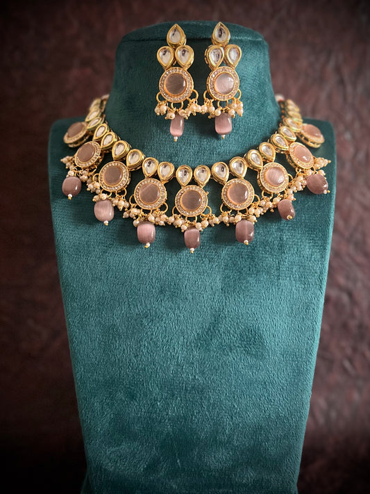 Kundan Necklace with Mauve Monalisa stone & Beads DB-KN11205Z