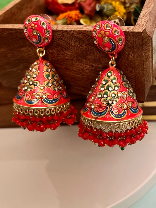Morni Meenakari Studded Coral jhumka DB-DP11280Z