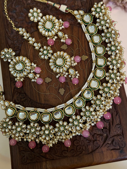 Rubina Kundan Necklace with Pink Beads DB-KN14400Z
