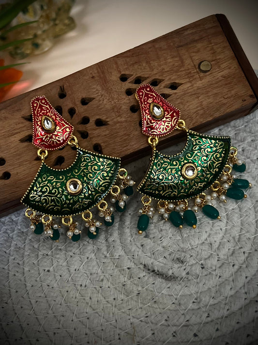 Meenakari Dual Shade Half moon Green Earrings DB-MK2300Z7