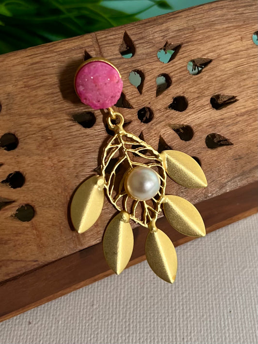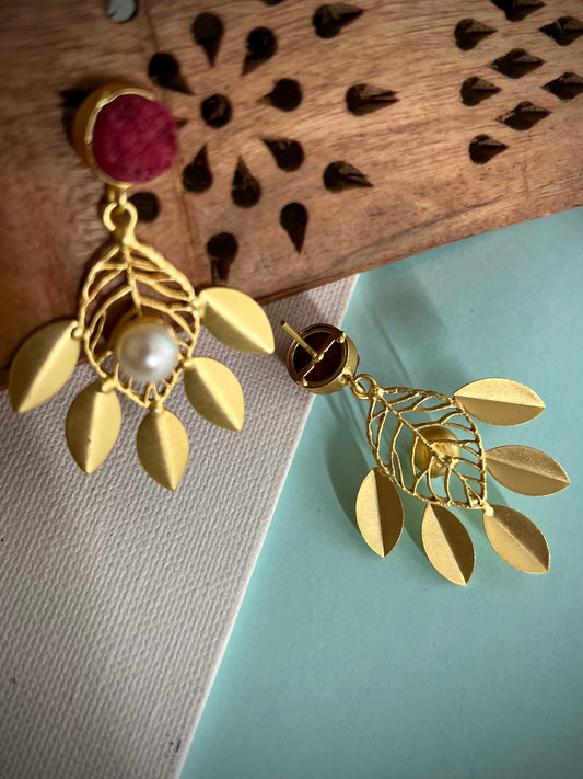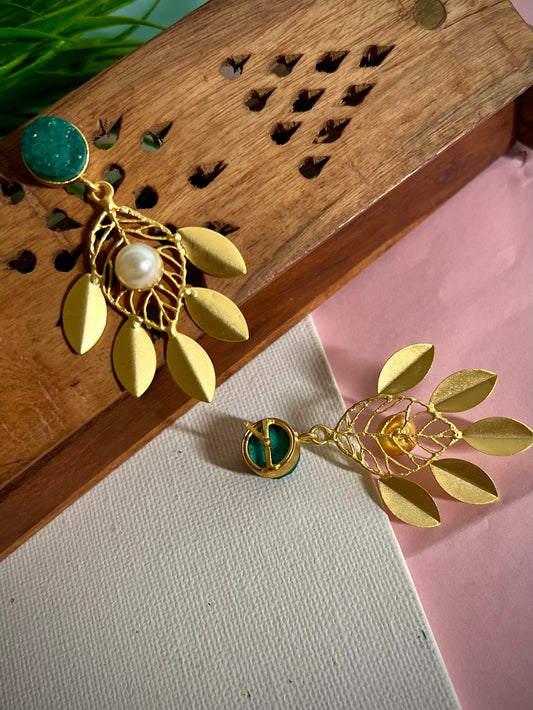 Leafy Pattern Trendy Gold Brass Dangler Earrings DB-BR1300Z