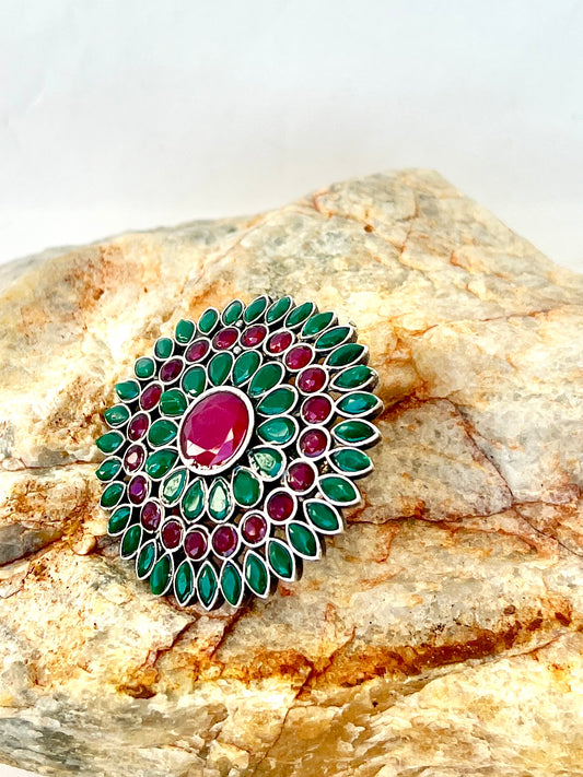 Pakhi Oxidised Flower Ring Pink & Green DB-OX300Z2