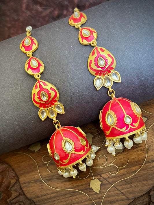 Meenakari Kundan Pink Jhumka with Ear Chain DB-GP13602Z