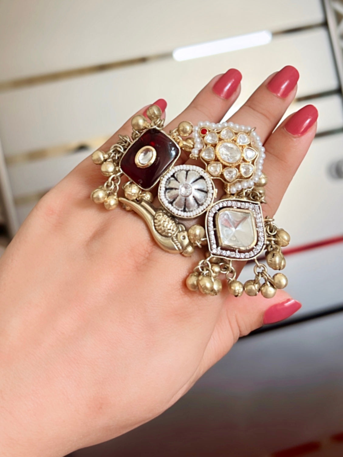 Aastha Peacock Motifs Kundan Ring DB-GP110001Z2