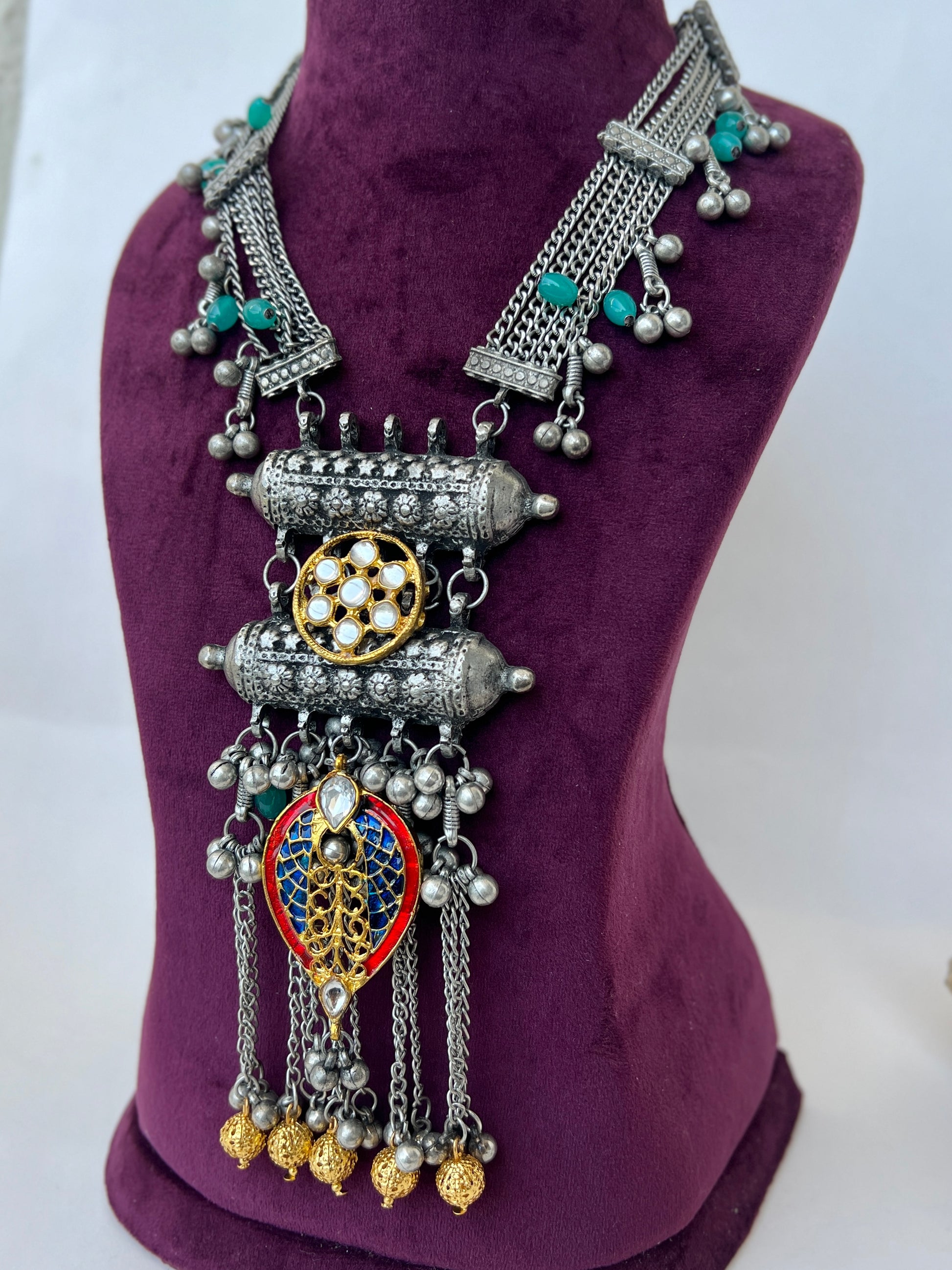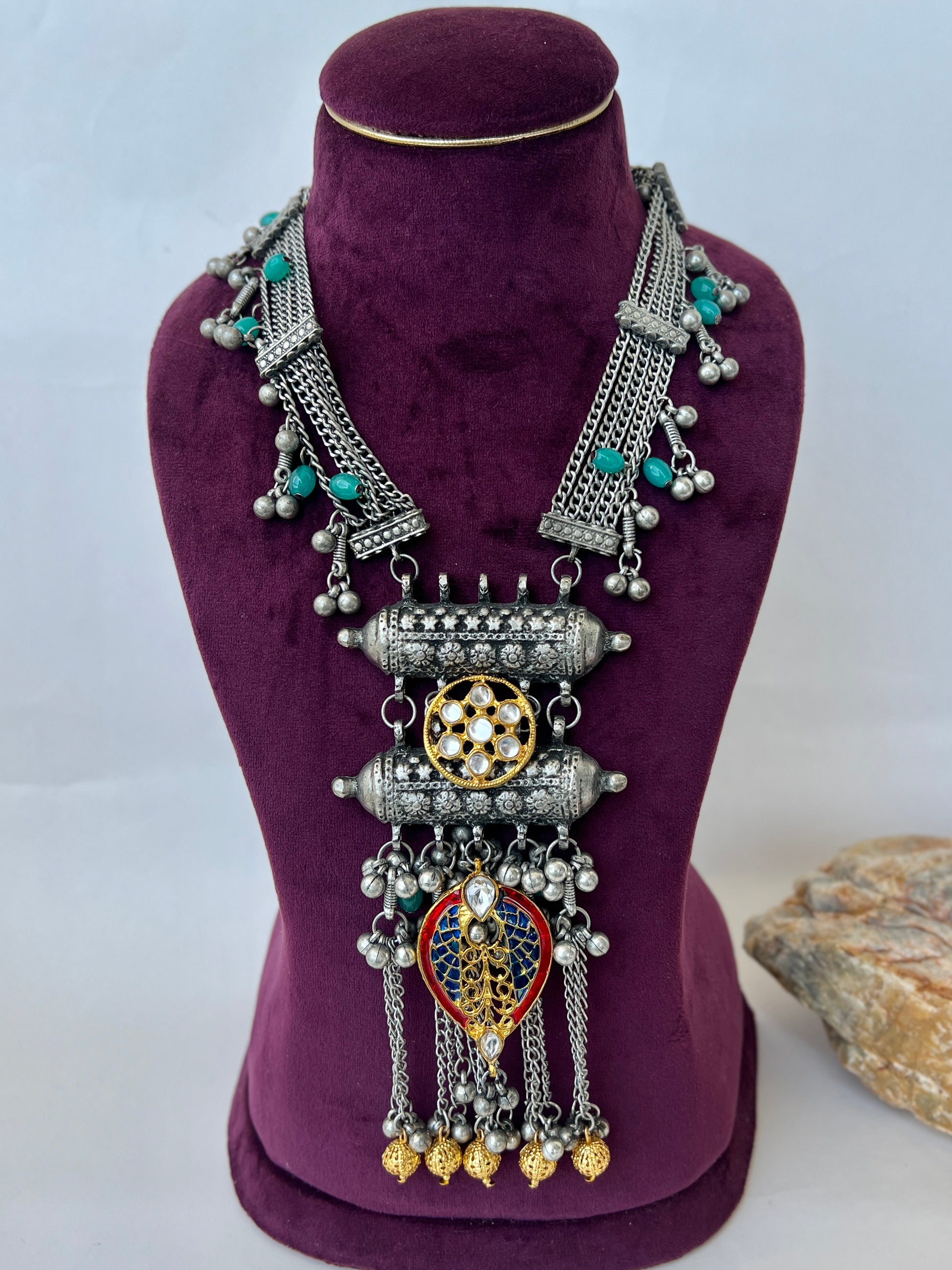 oxidised alloy metal, stone, beads
