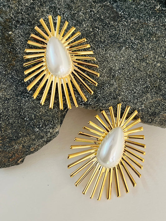 PEARL OF SUNSHINE GOLDEN STATEMENT EARRINGS DB-GP18002Z